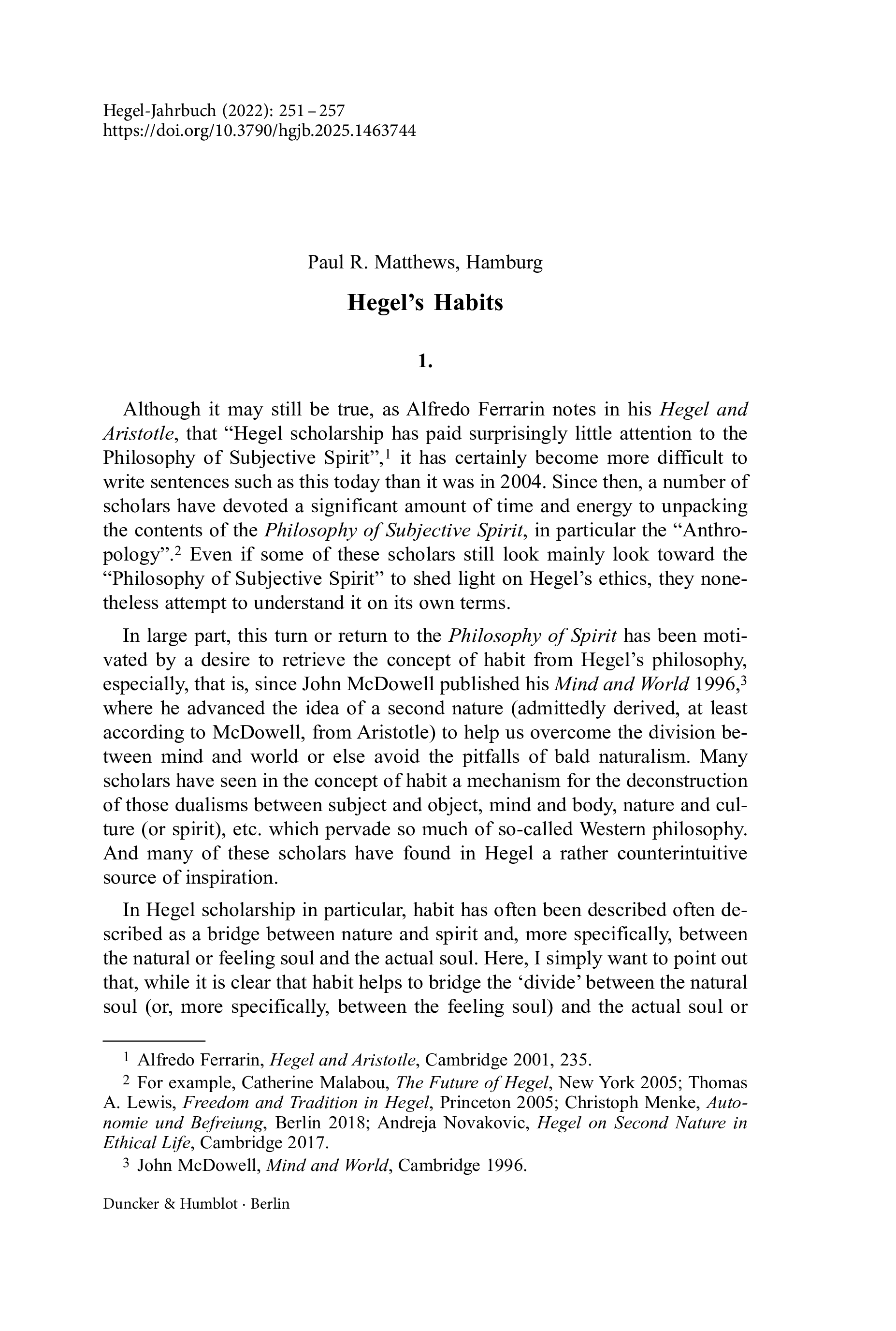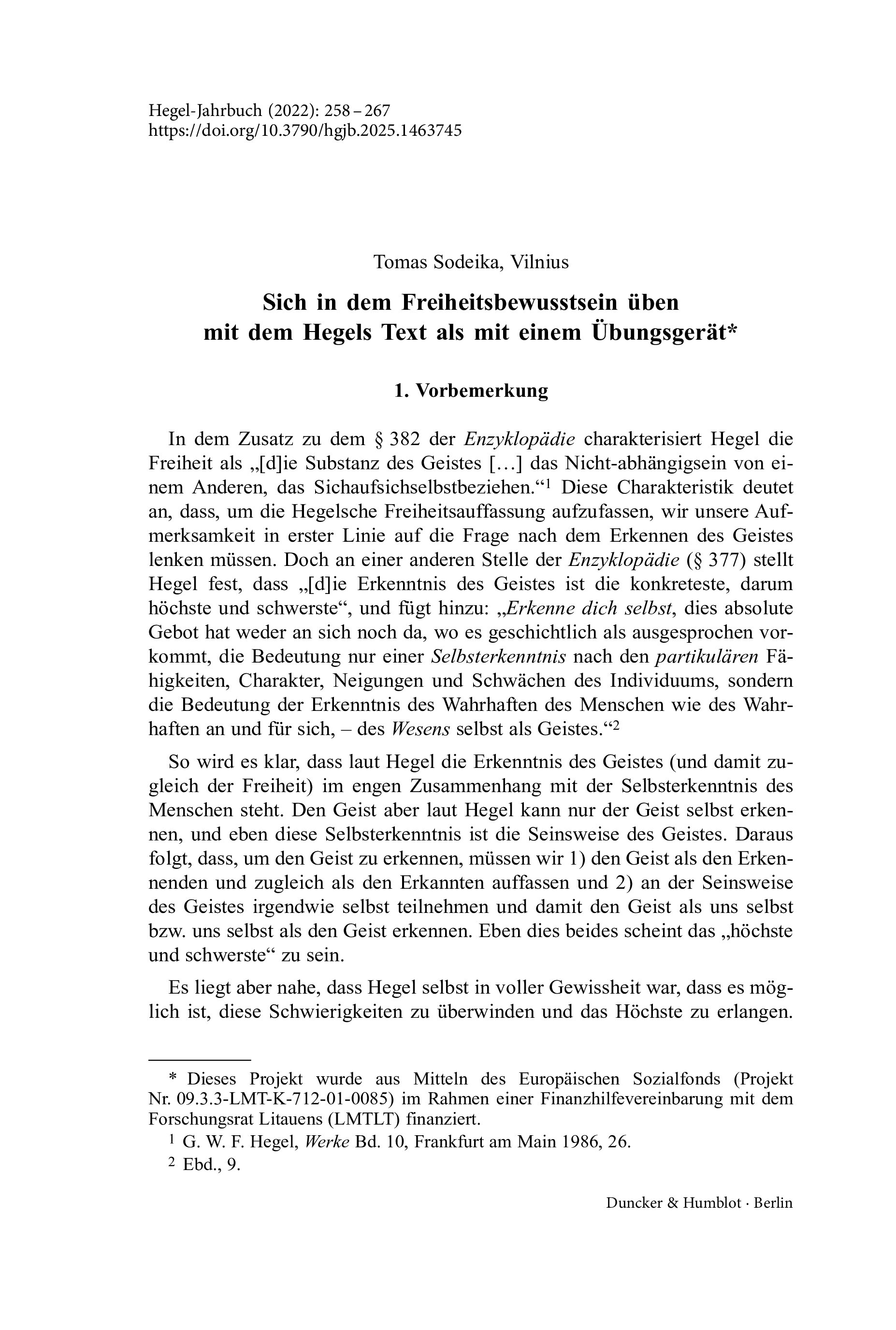 Hegel Jahrbuch, Vol. 2022 (2022), Iss. 1 : pp. 258–267 | First published online: November 14, 2025