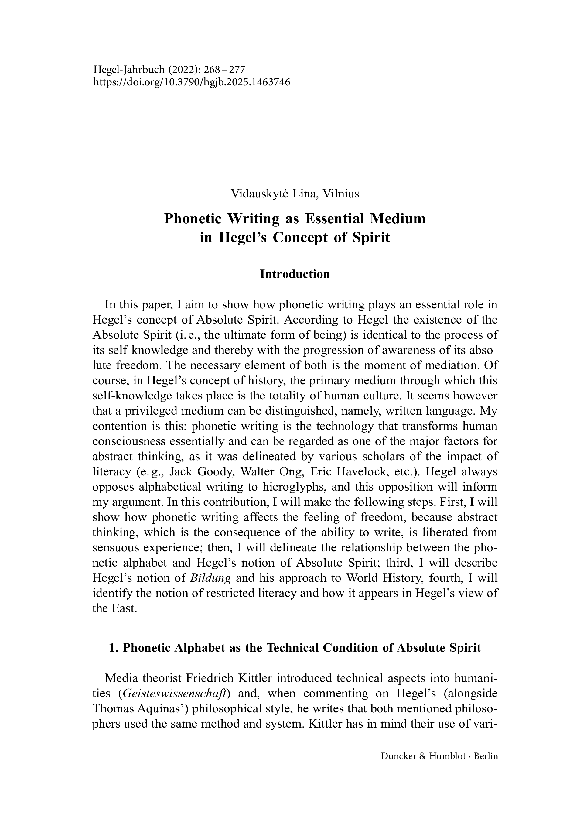 Phonetic Writing as Essential Medium in Hegel’s Concept of Spirit