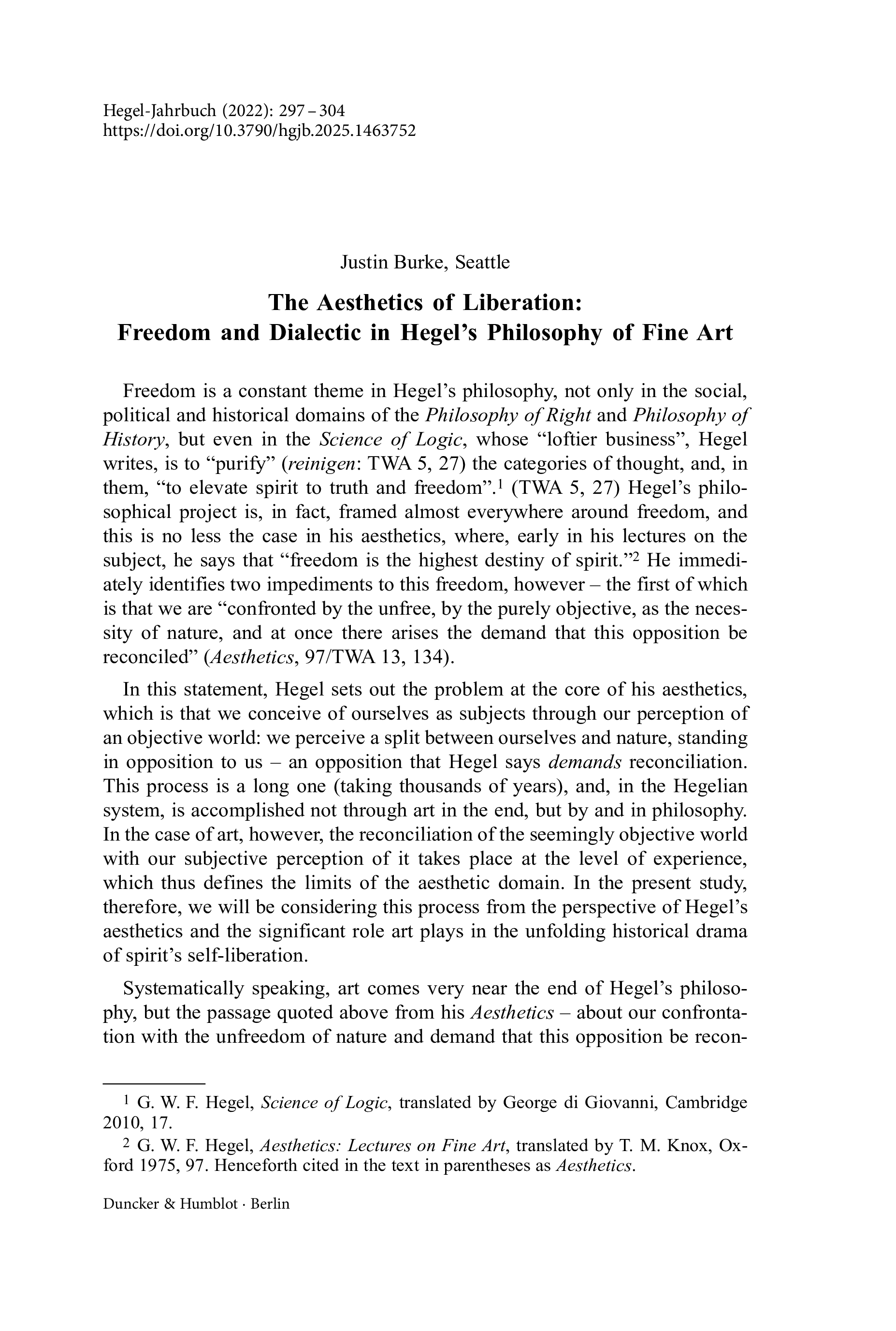 Hegel Jahrbuch, Vol. 2022 (2022), Iss. 1 : pp. 297–304 | First published online: November 14, 2025