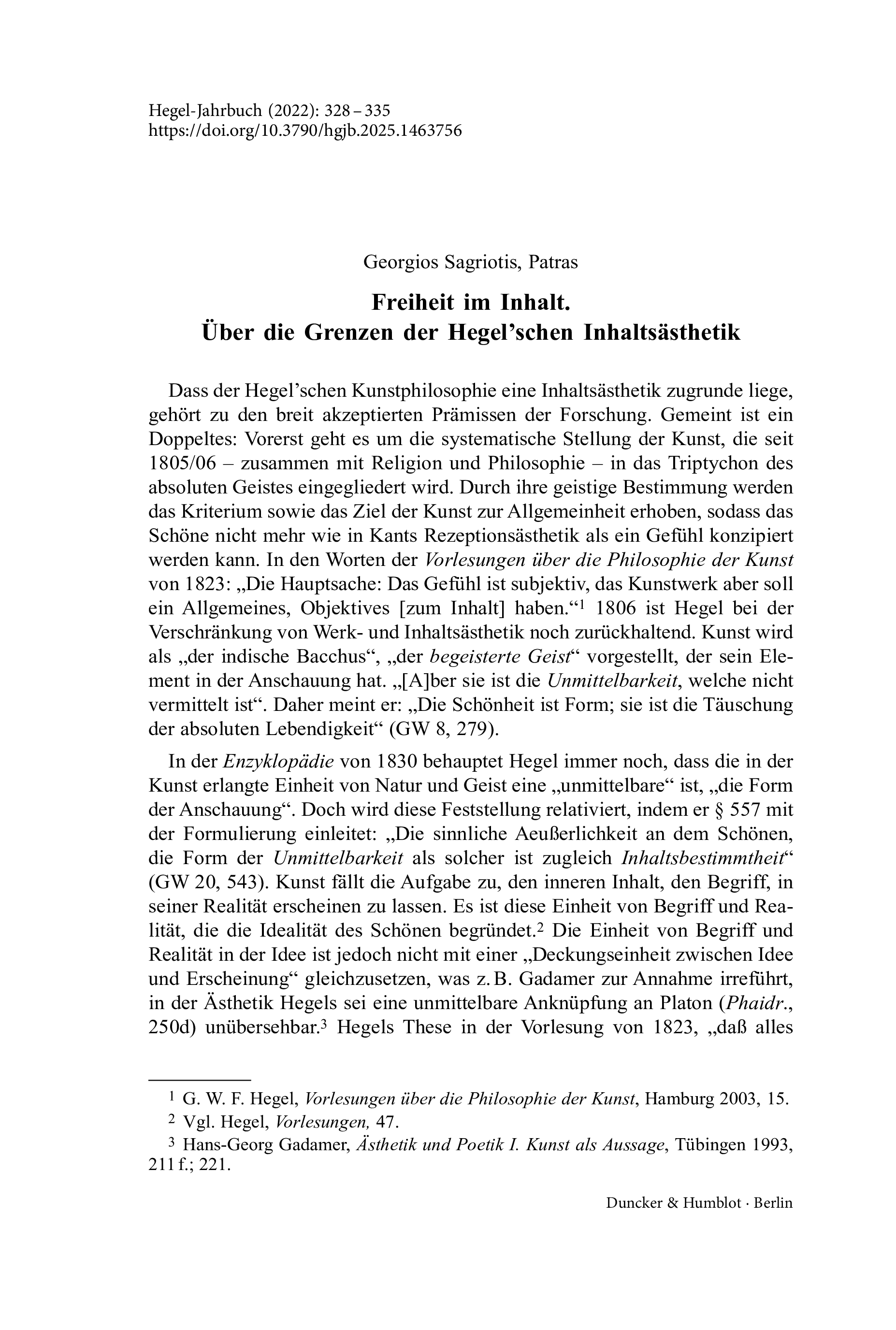 Hegel Jahrbuch, Vol. 2022 (2022), Iss. 1 : pp. 328–335 | First published online: November 14, 2025