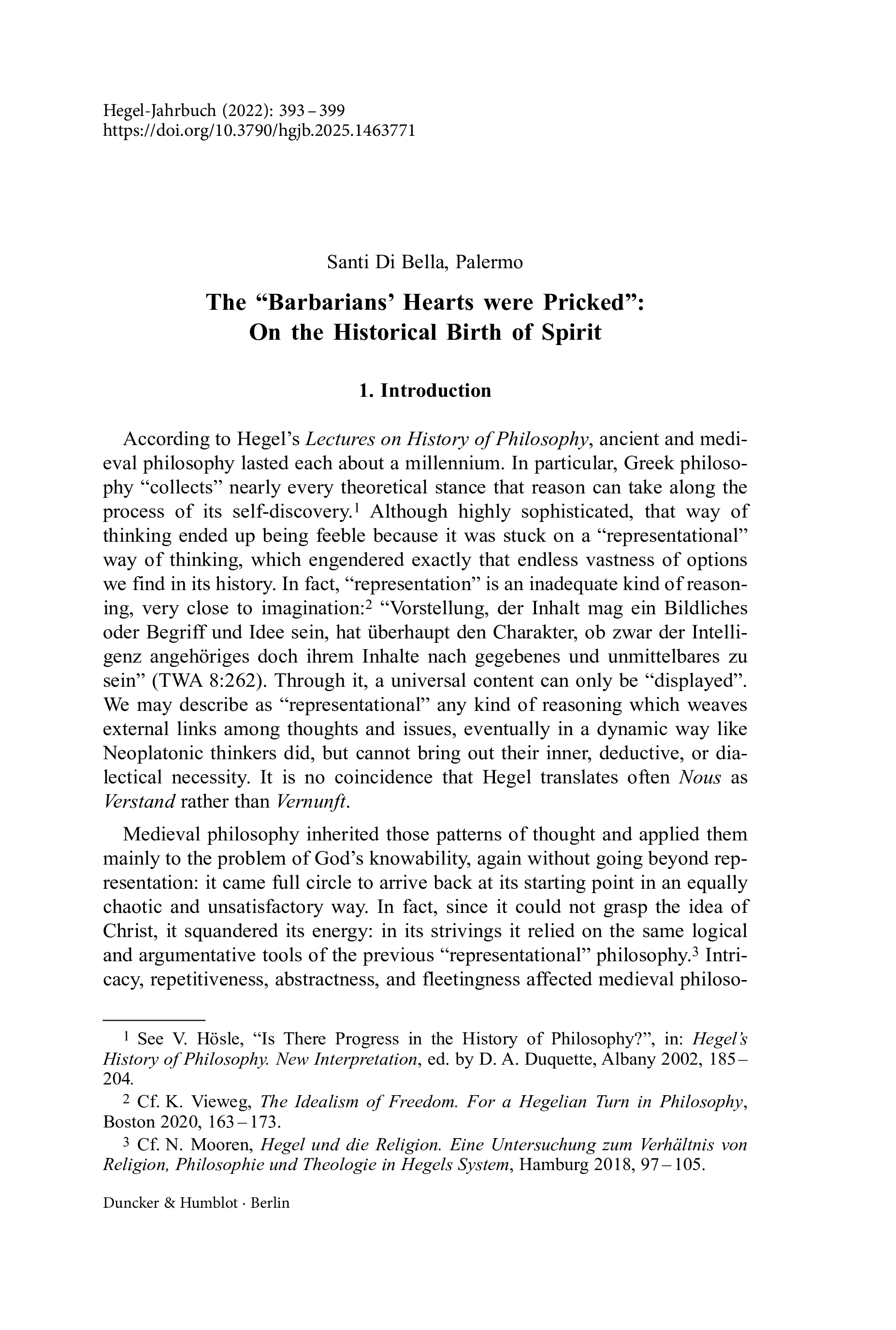 Hegel Jahrbuch, Vol. 2022 (2022), Iss. 1 : pp. 393–399 | First published online: November 14, 2025