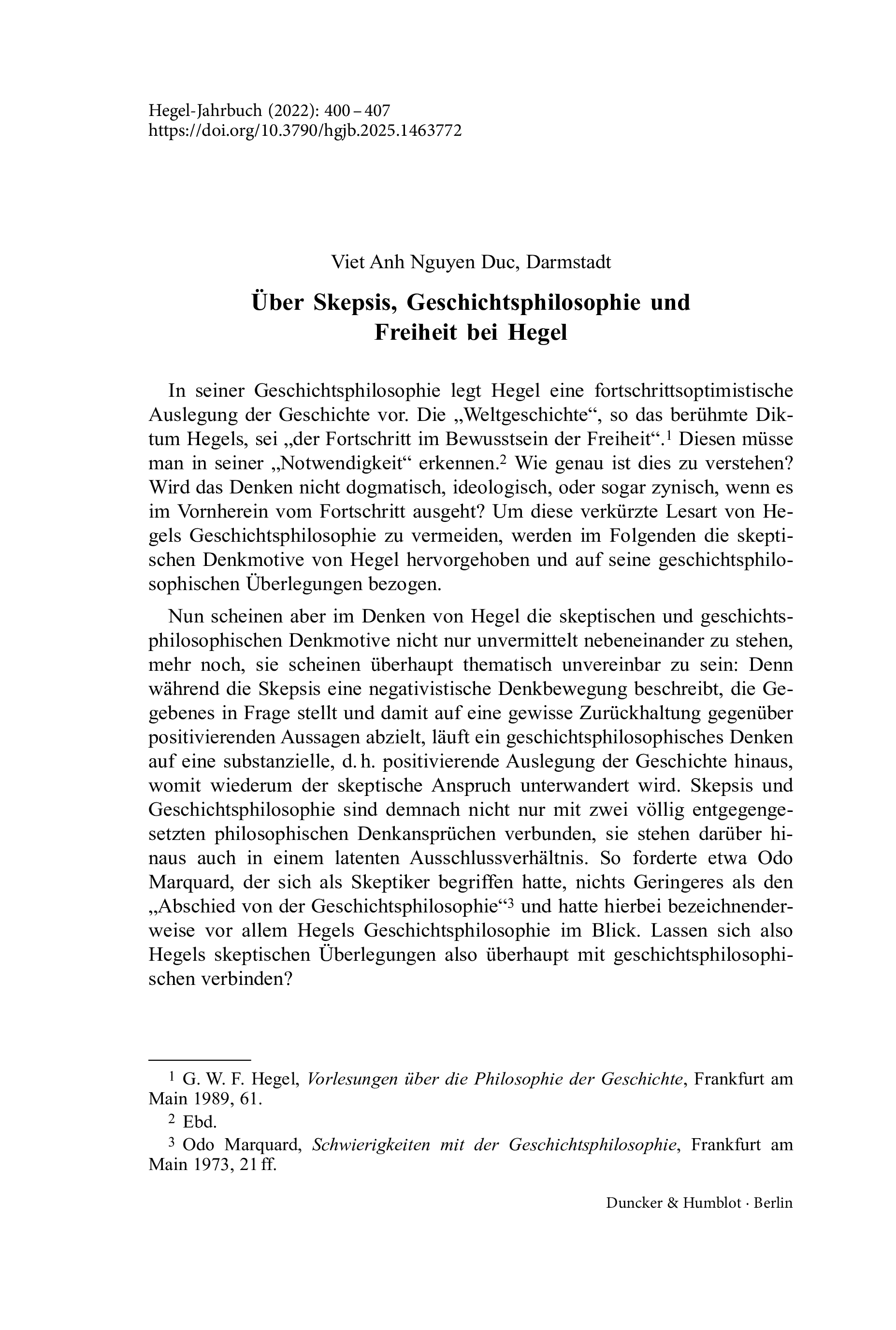 Hegel Jahrbuch, Vol. 2022 (2022), Iss. 1 : pp. 400–407 | First published online: November 14, 2025