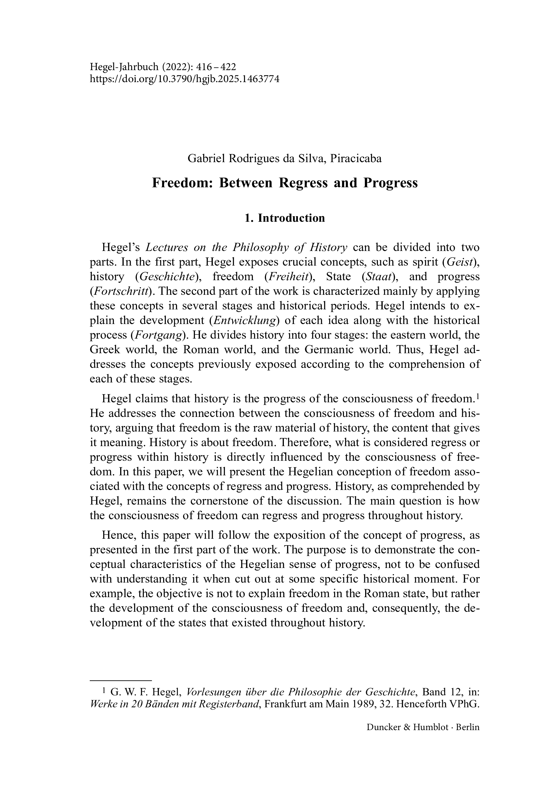 Hegel Jahrbuch, Vol. 2022 (2022), Iss. 1 : pp. 416–422 | First published online: November 14, 2025
