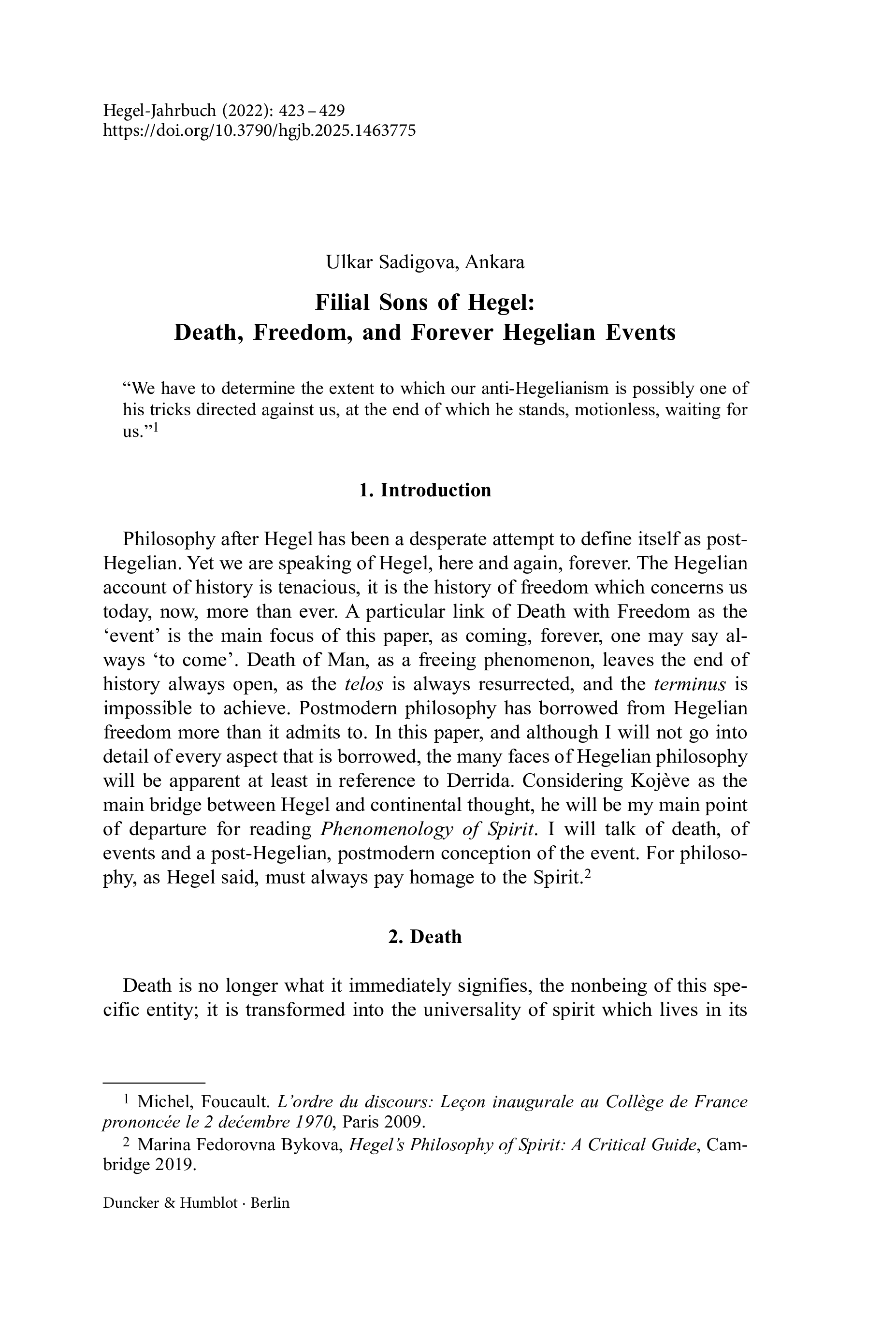 Hegel Jahrbuch, Vol. 2022 (2022), Iss. 1 : pp. 423–429 | First published online: November 14, 2025