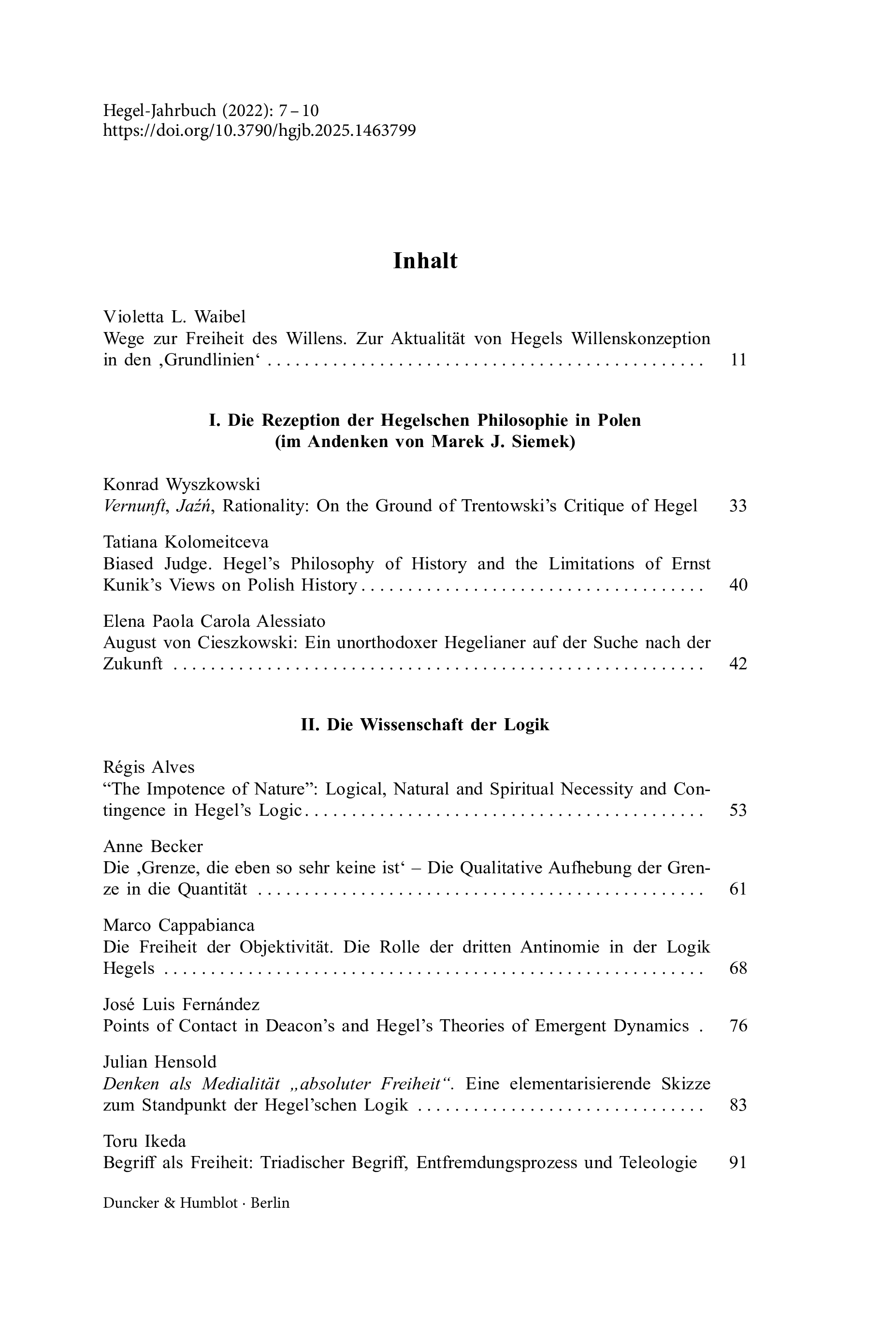Hegel Jahrbuch, Vol. 2022 (2022), Iss. 1 : p. 5 | First published online: November 14, 2025