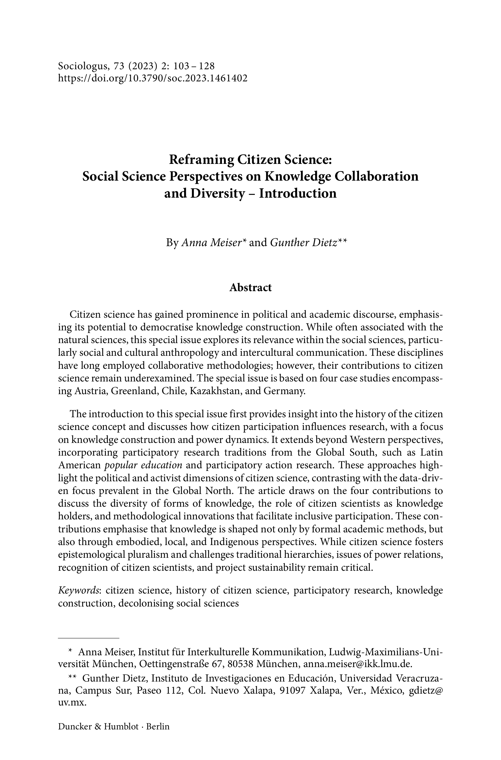 Reframing Citizen Science: Social Science Perspectives on Knowledge Collaboration and Diversity – Introduction