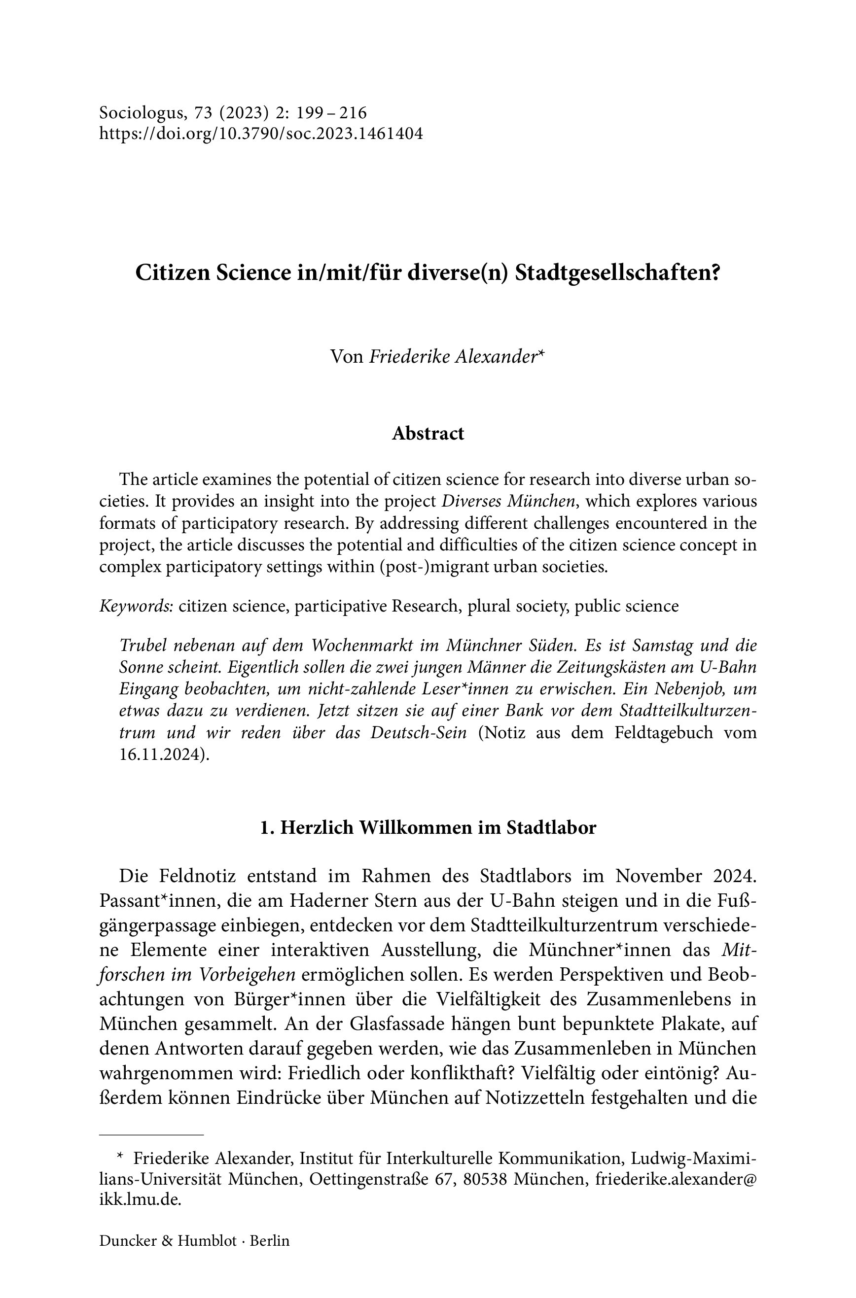Citizen Science in/mit/für diverse(n) Stadtgesellschaften?