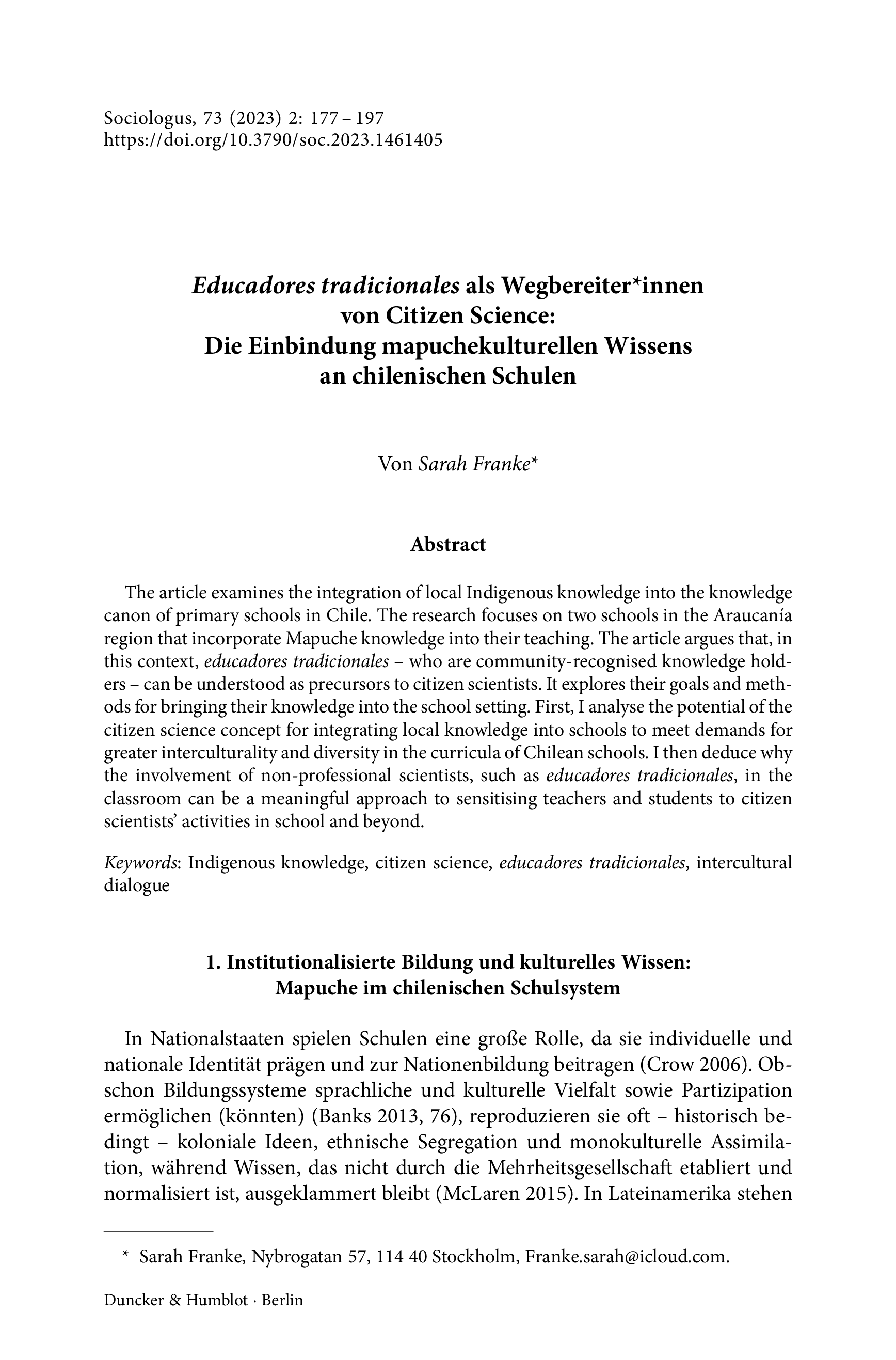 Educadores tradicionales als Wegbereiter*innen von Citizen Science: Die Einbindung mapuchekulturellen Wissens an chilenischen Schulen