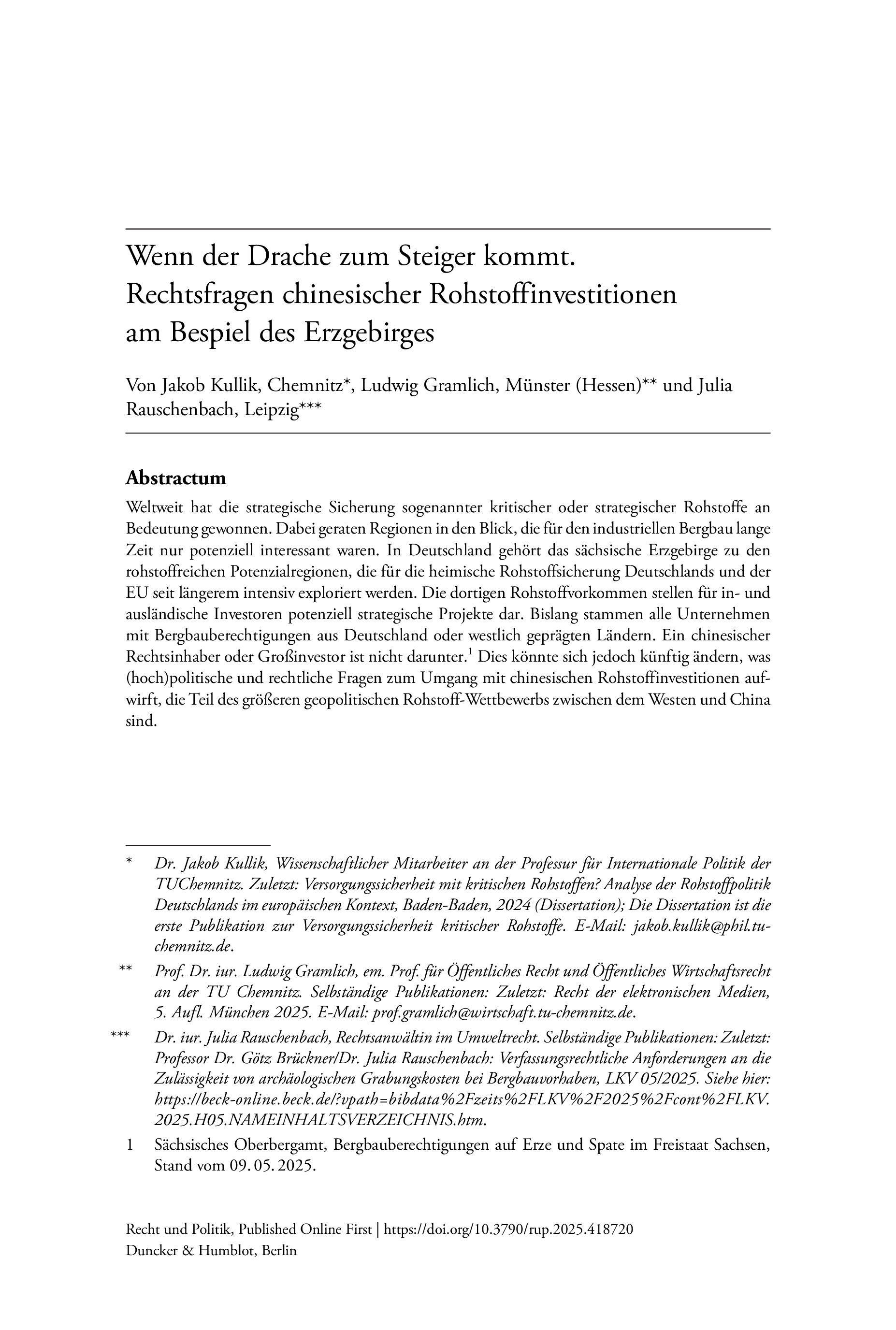 Wenn der Drache zum Steiger kommt. Rechtsfragen chinesischer Rohstoffinvestitionen am Beispiel des Erzgebirges