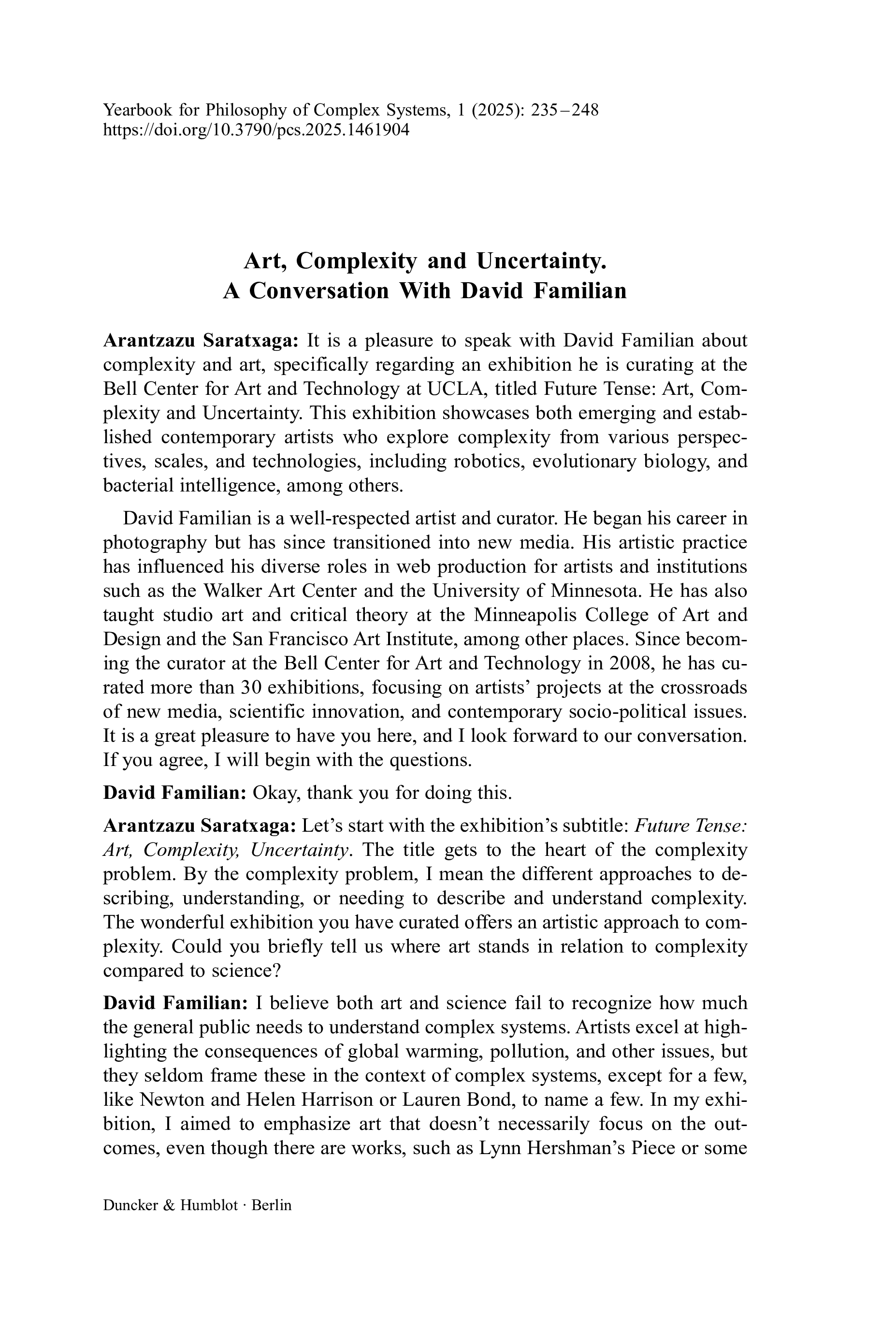 - Art and the aesthetic question of experimental forms of exploring complexity;