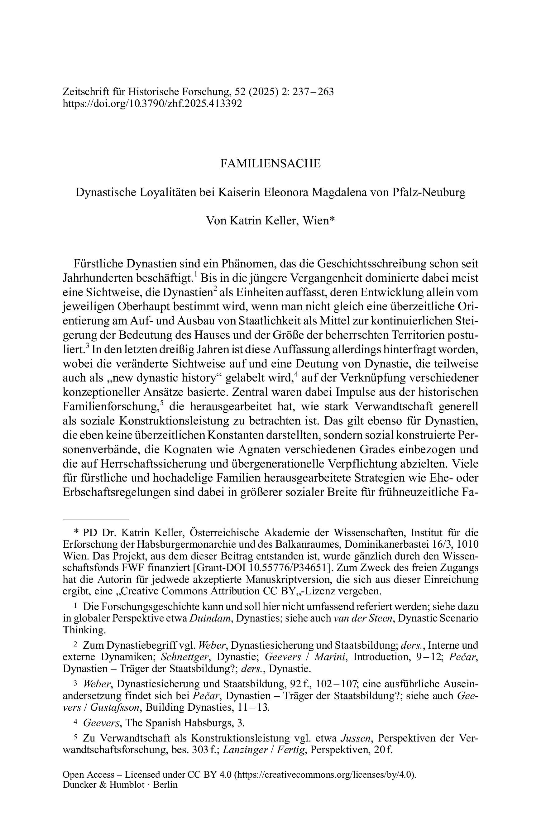 Dynastische Loyalitäten bei Kaiserin Eleonora Magdalena von Pfalz-NeuburgZeitschrift für Historische Forschung, Vol. 52 (2025), Iss. 2 : pp. 237–264 | First published online: September 17, 2025